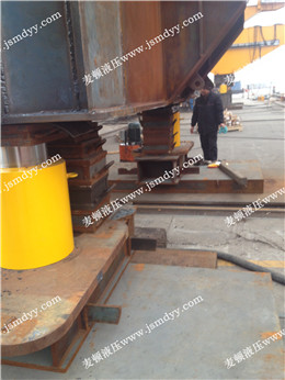描述:江蘇南通海門港”亞洲一號“龍門架同步頂升現場